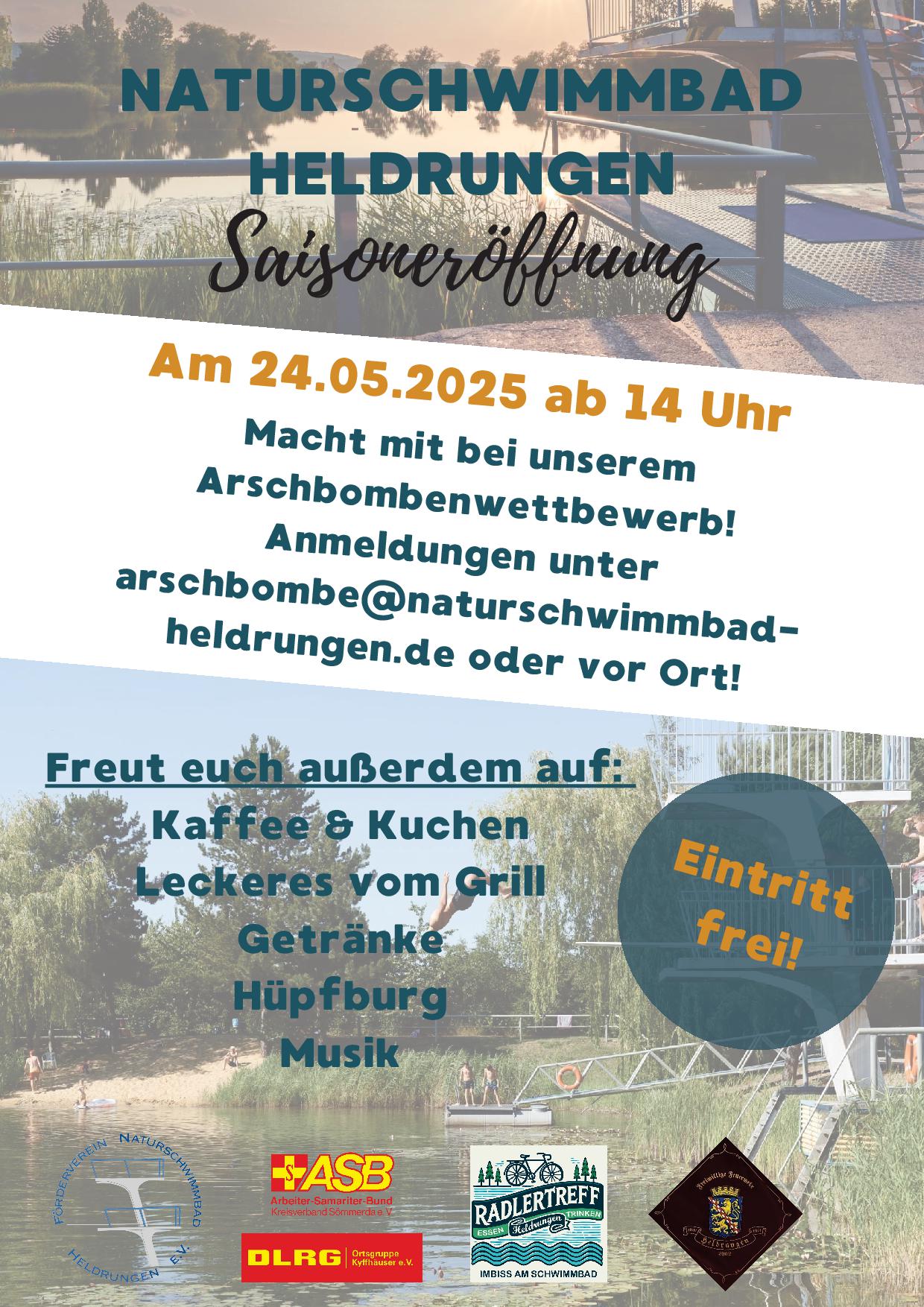 We will kick off the new swimming season with the 2nd ass-bombing competition on 24.05. Here you can show how to really get the water boiling. Those who prefer things a little quieter can make themselves comfortable with a cup of coffee and a delicious piece of cake by the water . We look forward